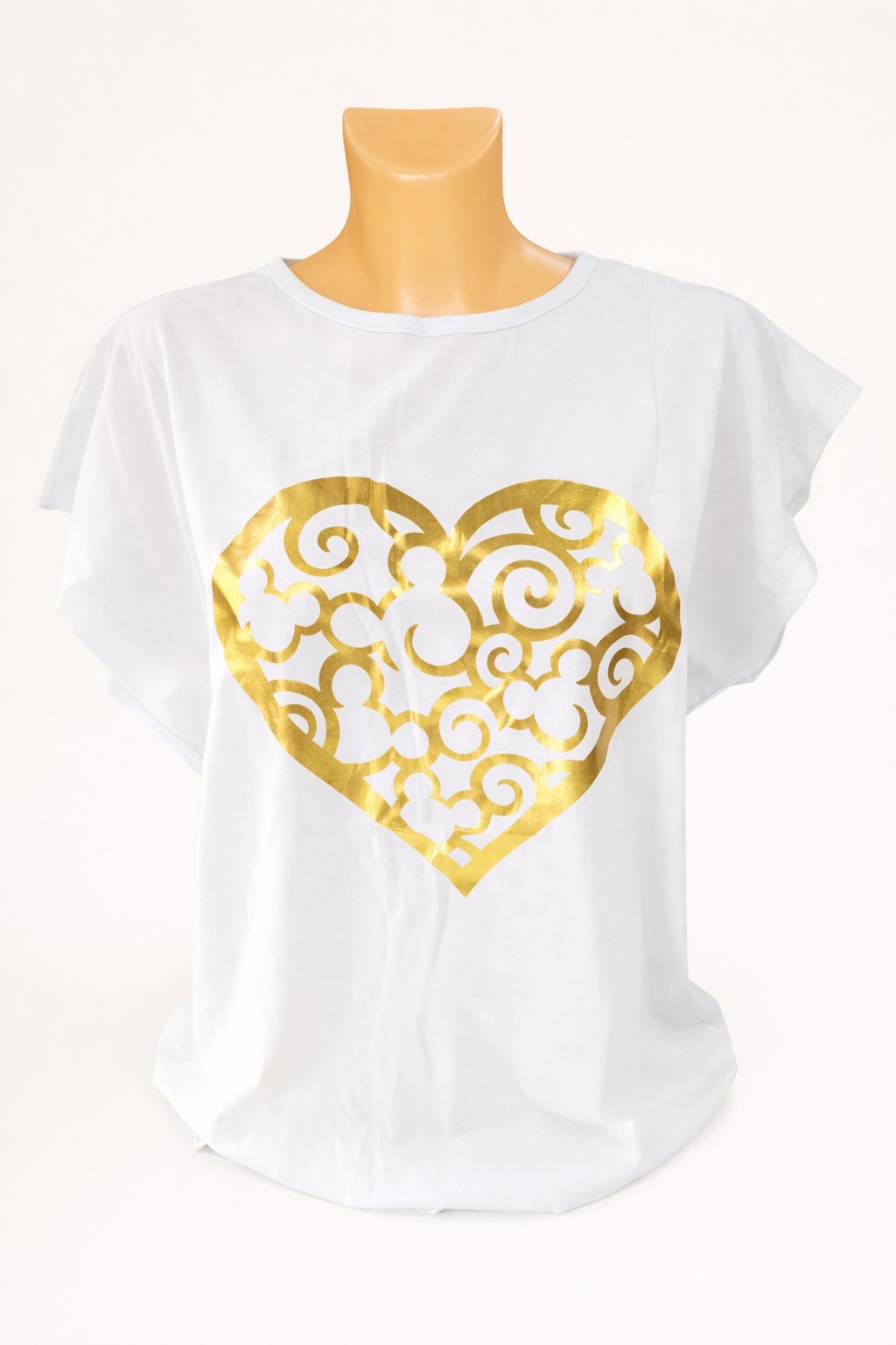 Bluzka Lara to wygodny model damski wykonany z miękkiej i przewiewnej bawełny, idealny na co dzień. Klasyczny biały kolor w połączeniu ze złotym sercem nadaje całości eleganckiego i kobiecego charakteru.