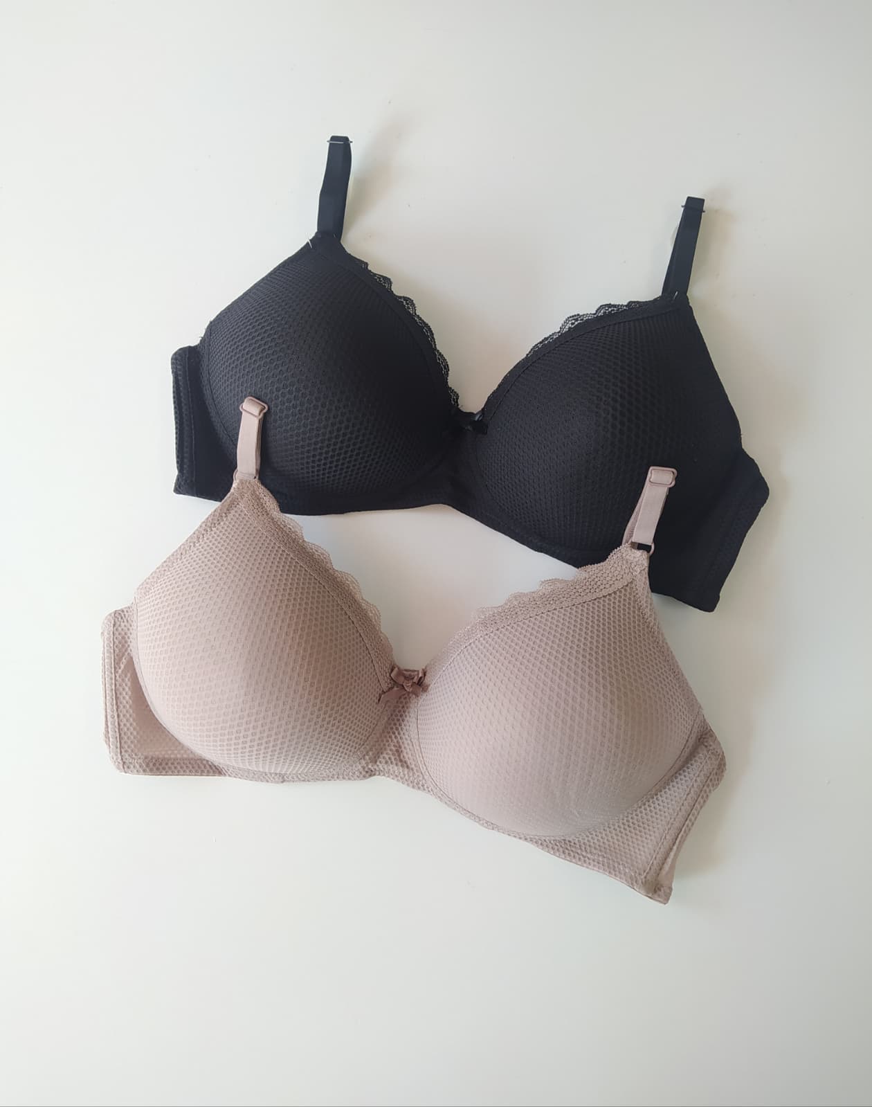Miseczki z delikatnymi wypustkami nadają bieliźnie nowoczesnego charakteru i wyróżniają ją na tle klasycznych fasonów. Subtelna kokardka między miseczkami dodaje całości kobiecego uroku i lekkiej elegancji.